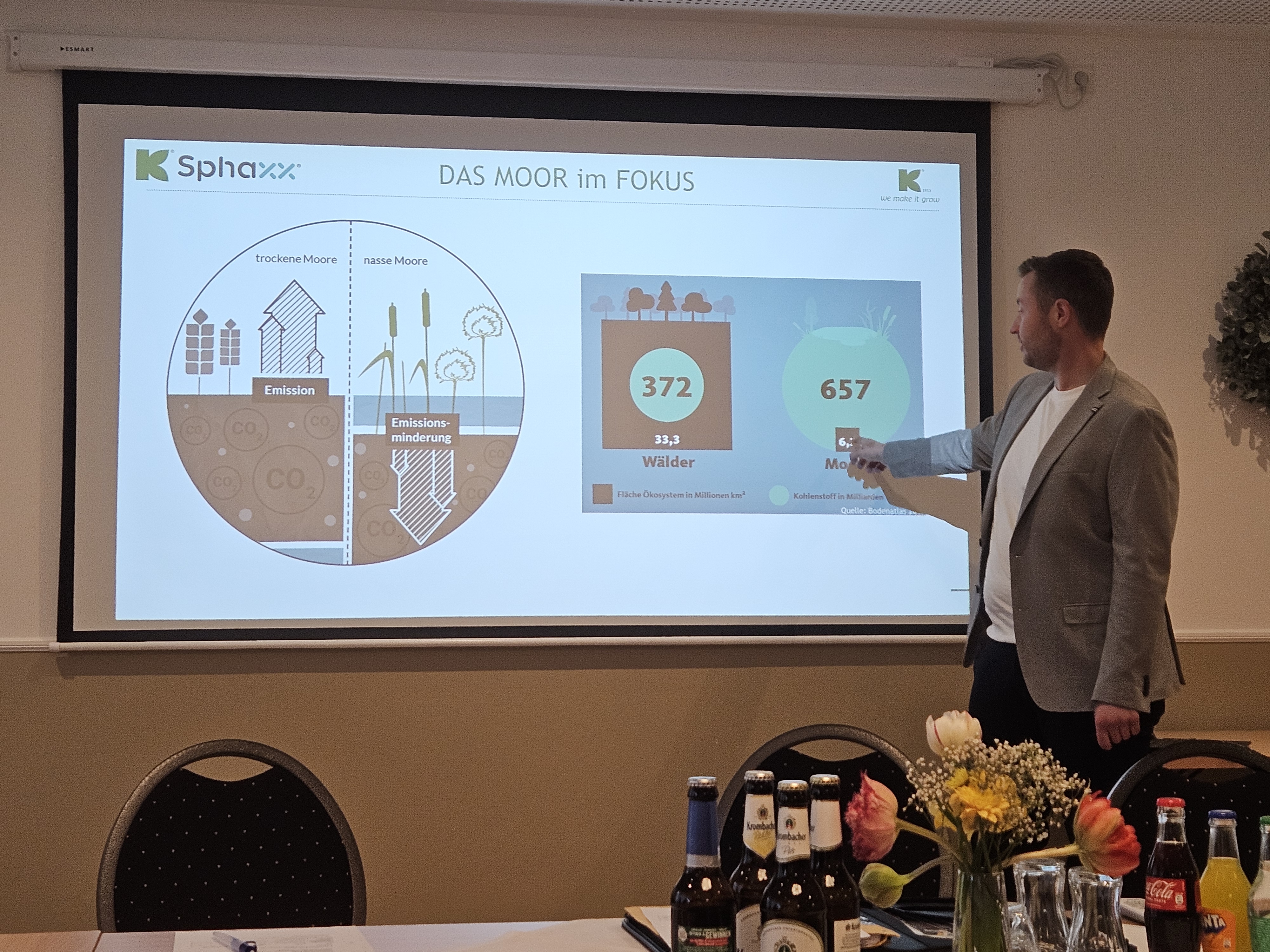 Ein inhaltlicher Höhepunkt des Abends war der Fachvortrag inklusive Präsentation und Anschauungsmaterial von Dr. Bernd Dreyer zum Thema „Das Ökosystem Moor – vom Menschenfeind zum Klimahelden?“. Hier wurde klar, dass das Moor der Region zu wirtschaftlichem Aufschwung verholfen hat (vgl. 75 Jahre Emslandplan), zum anderen ist das Moor unter ökologischen Gesichtspunkten als CO2-Speicher zu betrachten. Daraus resultieren Herausforderungen für Landwirtschaft, Bevölkerung, Umweltschutz und Renaturierung. Innovative Lösungsansätze wurden diskutiert.